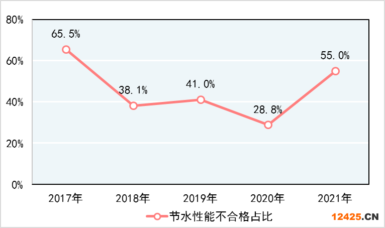 圖1 近5年水暖衛(wèi)浴產品節(jié)水性能項目不合格占比變化情況