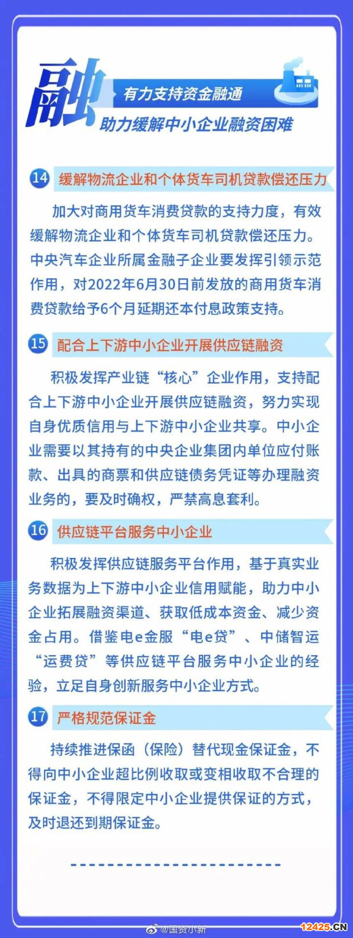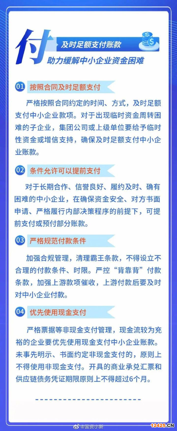 一方面,通知聚焦于中小企業(yè)“燃眉之急”。“劍指”其面臨的回款不暢、資金緊張等困難,推動(dòng)中央企業(yè)采取及時(shí)足額支付賬款、切實(shí)加快減免房租、貨車(chē)貸款延期還本付息、大力實(shí)施降費(fèi)提質(zhì)、有力支持資金融通等措施,助力更多中小企業(yè)“渡難關(guān)”。