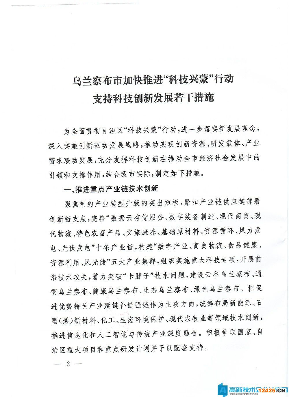 烏蘭察布市高新技術(shù)企業(yè)獎(jiǎng)勵(lì)政策:烏蘭察布市加快推進(jìn)“科技興蒙”行動(dòng)支持科技創(chuàng)新發(fā)展若干措施