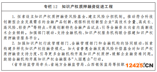 鼓勵(lì)銀行、擔(dān)保、創(chuàng)業(yè)投資、保險(xiǎn)等金融機(jī)構(gòu)創(chuàng)新知識(shí)產(chǎn)權(quán)金融新產(chǎn)品,與科技型中小企業(yè)開展知識(shí)產(chǎn)權(quán)轉(zhuǎn)移轉(zhuǎn)化項(xiàng)目金融服務(wù)對(duì)接,對(duì)專利權(quán)、商標(biāo)專用權(quán)、著作權(quán)、植物新品種等知識(shí)產(chǎn)權(quán)進(jìn)行打包組合質(zhì)押。探索社會(huì)資金參與知識(shí)產(chǎn)權(quán)質(zhì)押融資基金運(yùn)作的路徑和模式。完善知識(shí)產(chǎn)權(quán)質(zhì)物處置機(jī)制。健全知識(shí)產(chǎn)權(quán)出資入股和退出機(jī)制。探索知識(shí)產(chǎn)權(quán)證券化,依托上海、深圳證券交易所證券交易體系,試行將知識(shí)產(chǎn)權(quán)相關(guān)債權(quán)資產(chǎn)實(shí)現(xiàn)真實(shí)出售。鼓勵(lì)保險(xiǎn)公司開發(fā)知識(shí)產(chǎn)權(quán)保險(xiǎn)新產(chǎn)品。(省市場(chǎng)監(jiān)管局牽頭,省委宣傳部、省地方金融監(jiān)管局、山西銀保監(jiān)局、山西證監(jiān)局等按職責(zé)分工負(fù)責(zé))