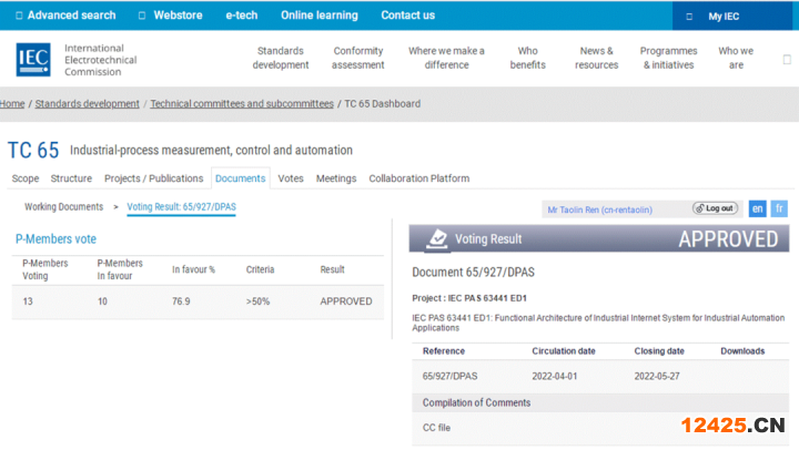 北京時間5月28日凌晨,IEC官網(wǎng)公布,由卡奧斯COSMOPlat聯(lián)合機械工業(yè)儀器儀表綜合技術(shù)經(jīng)濟研究所(以下簡稱儀綜所)牽頭制定的全球首個工業(yè)互聯(lián)網(wǎng)系統(tǒng)功能架構(gòu)國際標準IEC PAS 63441《Functional Architecture of Industrial Internet System for Industral Automation Applications》通過IEC/TC 65(工業(yè)測控和自動化)投票,預(yù)計在2022年年底正式發(fā)布。
