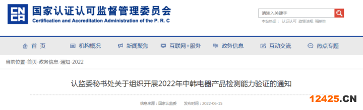 認監(jiān)委秘書處關于組織開展2022年中韓電器產(chǎn)品檢測能力驗證的通知