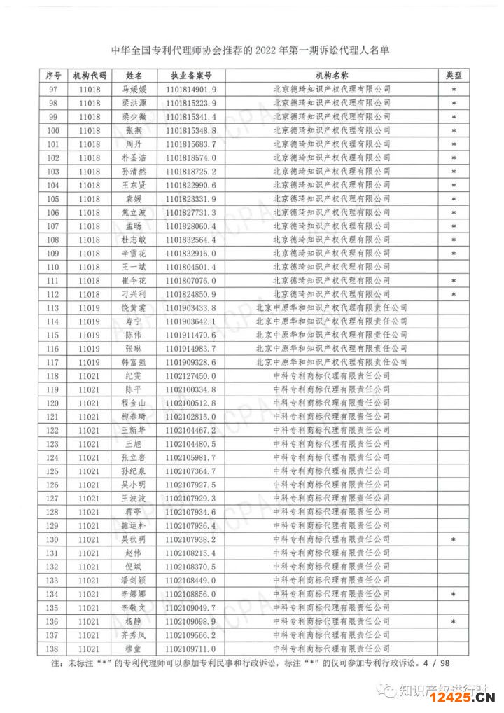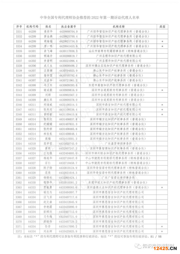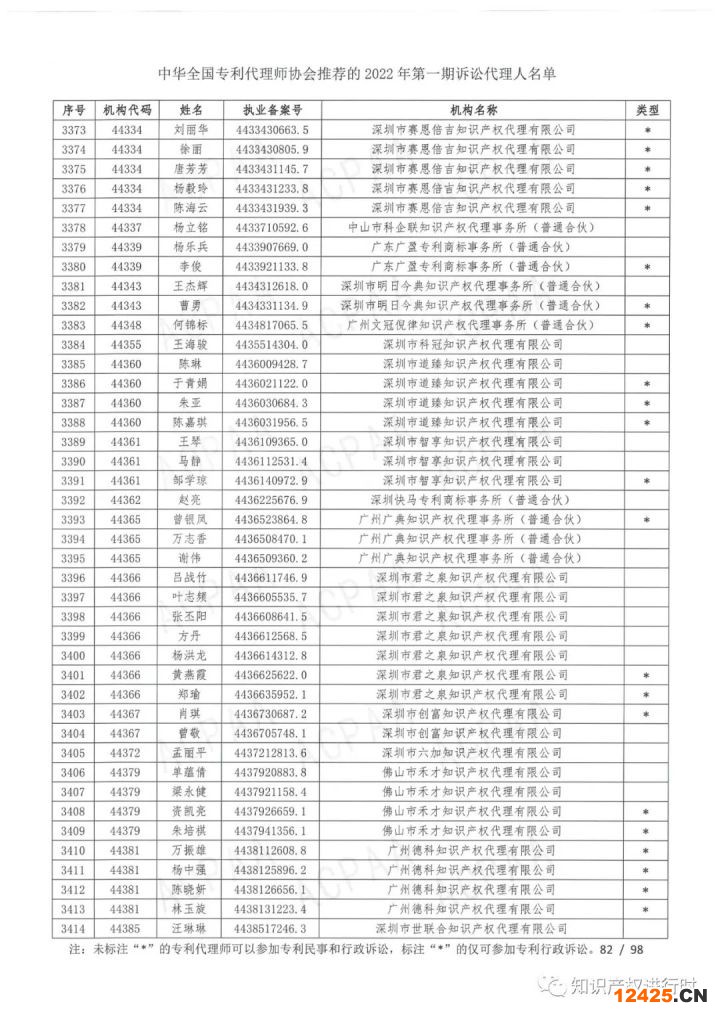 附件1.中華全國(guó)專利代理師協(xié)會(huì)推薦的2022年第一期訴訟代理人名單.pdf