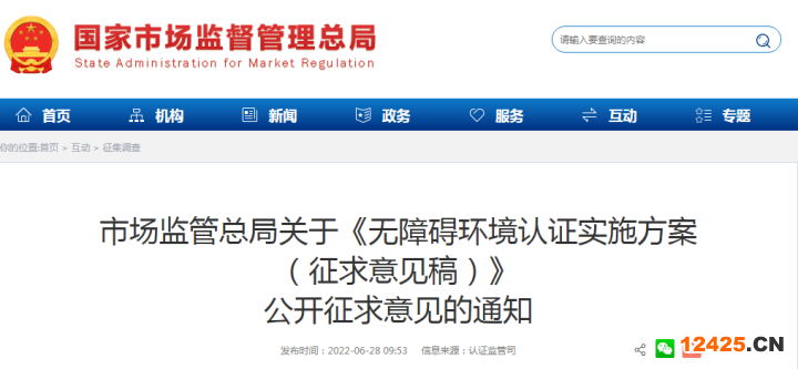 市場監(jiān)管總局關(guān)于《無障礙環(huán)境認(rèn)證實(shí)施方案(征求意見稿)》公開征求意見的通知