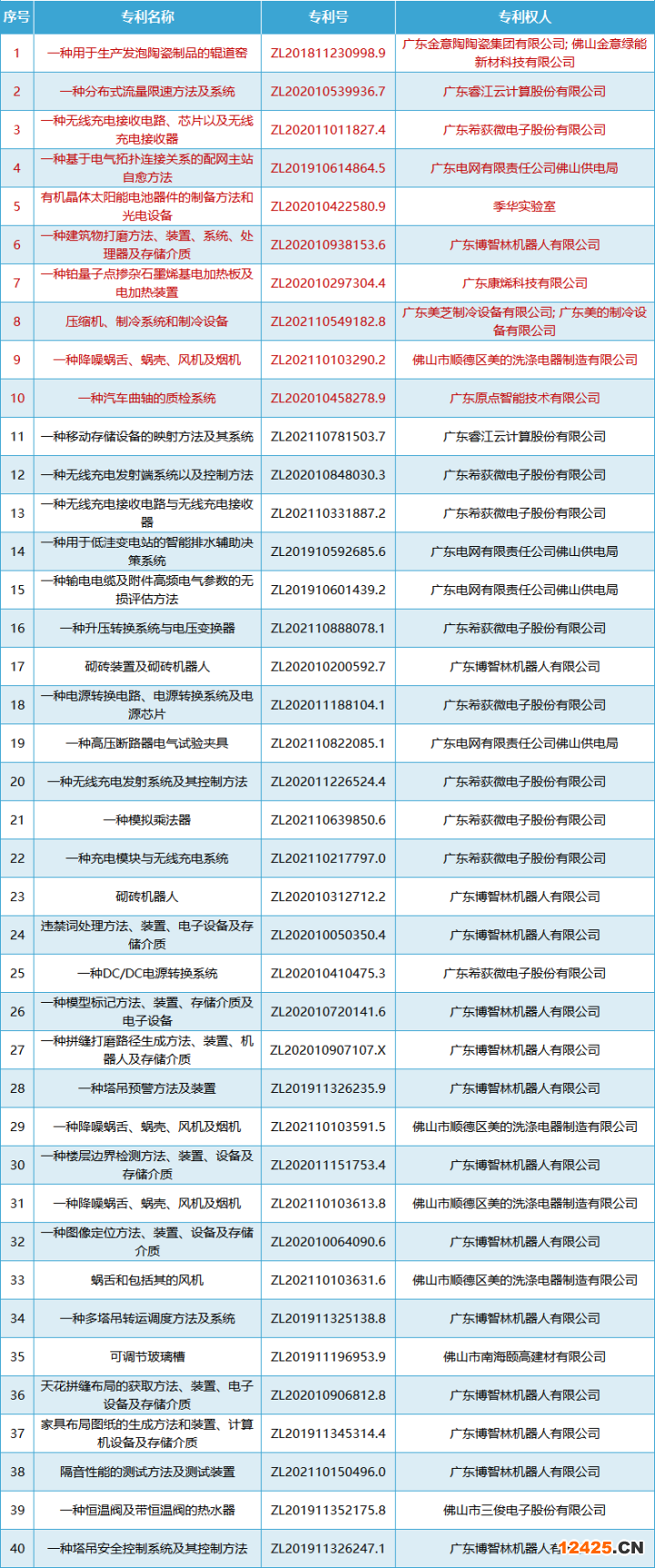 首屆佛山市發(fā)明專利價(jià)值度百強(qiáng)榜單