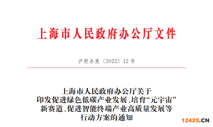 上海市人民政府辦公廳關于印發(fā)促進綠色低碳產(chǎn)業(yè)發(fā)展、培育“元宇宙”新賽道、促進智能終端產(chǎn)業(yè)高質(zhì)量發(fā)展等行動方案的通知