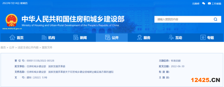 住房和城鄉(xiāng)建設部 國家發(fā)展改革委印發(fā)《城鄉(xiāng)建設領域碳達峰實施方案》