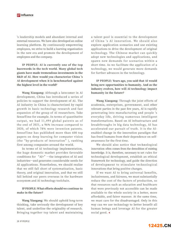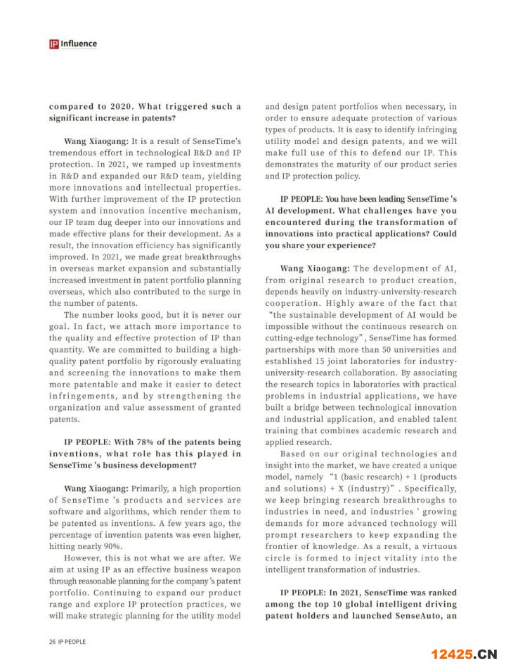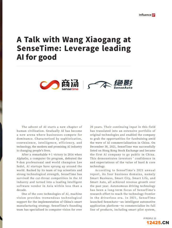 “《知產(chǎn)人物 IP PEOPLE》英文國(guó)際期刊就人工智能這個(gè)熱門話題與商湯科技聯(lián)合創(chuàng)始人、首席科學(xué)家、絕影智能汽車事業(yè)群總裁王曉剛進(jìn)行了深入交流,探討了商湯的科研新成果與未來(lái)發(fā)展方向,近距離感受到了國(guó)內(nèi)人工智能的成長(zhǎng)。”