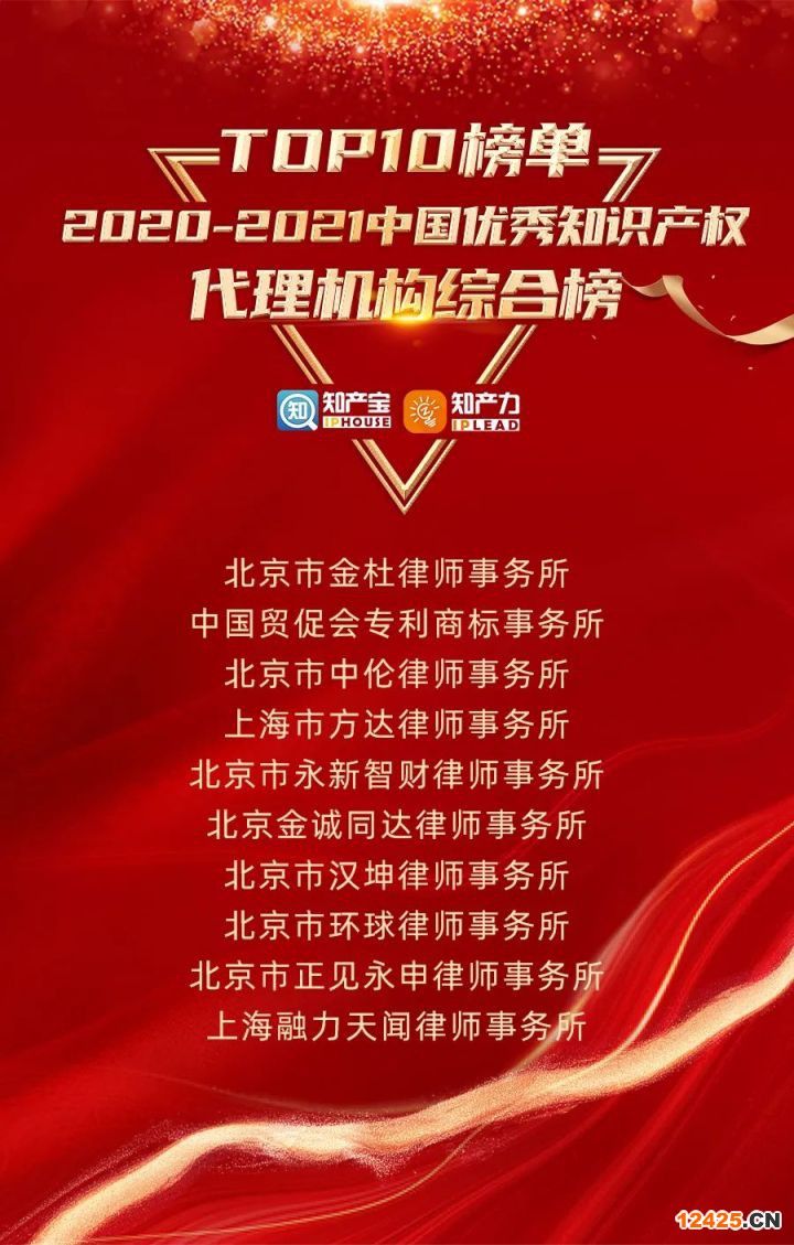 2020-2021中國優(yōu)秀知識(shí)產(chǎn)權(quán)代理機(jī)構(gòu)精銳榜TOP 10