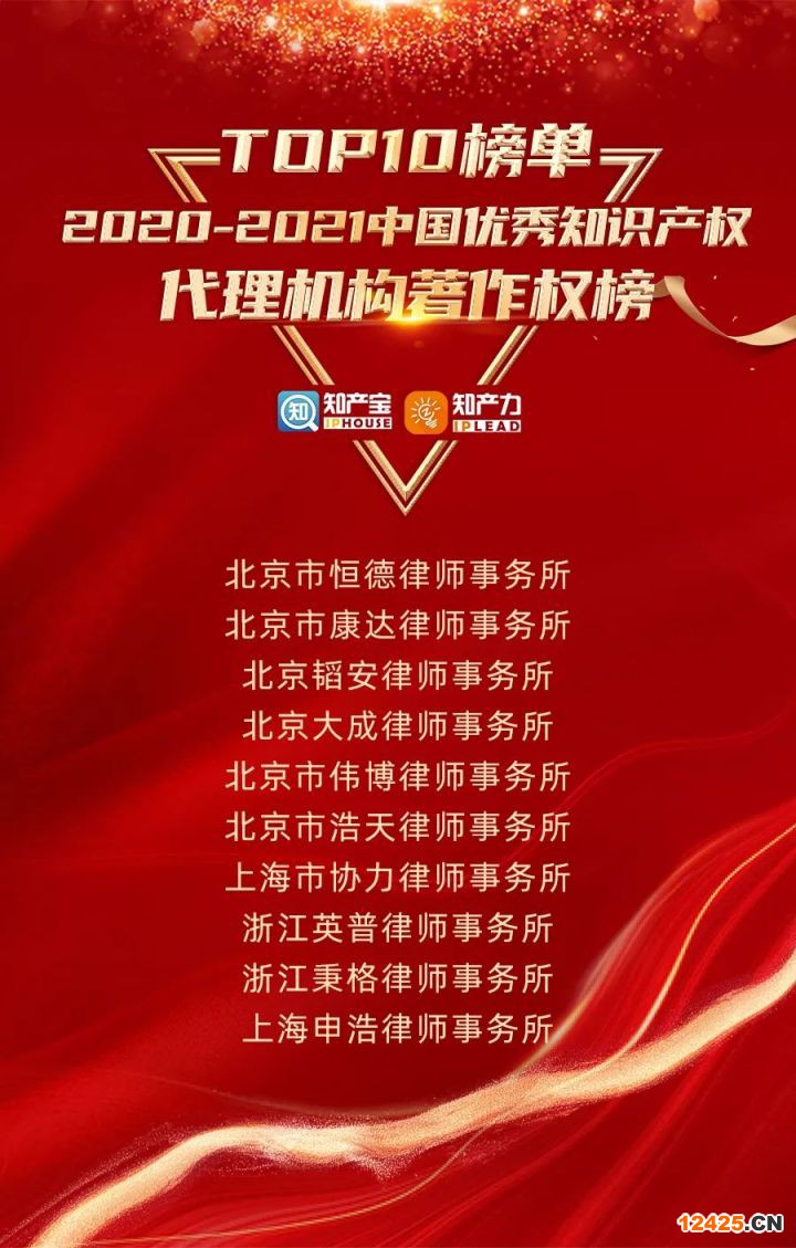 2020-2021中國優(yōu)秀知識(shí)產(chǎn)權(quán)代理機(jī)構(gòu)著作權(quán)榜TOP 10