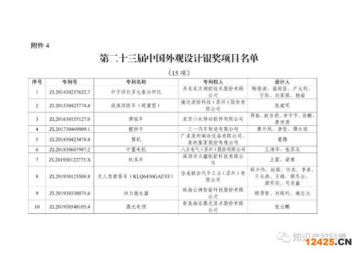 3.第二十三屆中國(guó)專利銀獎(jiǎng)項(xiàng)目名單