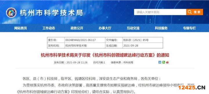 七、杭州市碳達峰科創(chuàng)領(lǐng)域最高獎勵500萬(2021年9月28日)
