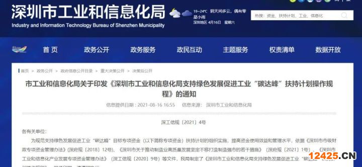 九、深圳出臺工業(yè)碳中和補貼政策 ,單個項目資助金額不超過1000萬元(2021年7月15日)