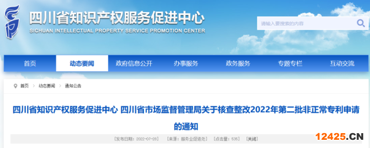 “四川省知識(shí)產(chǎn)權(quán)服務(wù)促進(jìn)中心 四川省市場(chǎng)監(jiān)督管理局關(guān)于核查整改2022年第二批非正常專利申請(qǐng)的通知。”