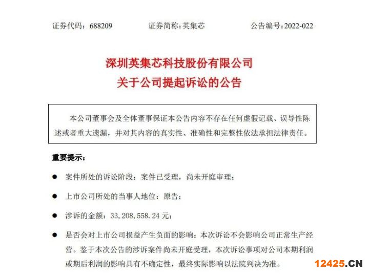 “新機(jī)芯就公司與珠海智融科技、鄭森杰之間的集成電路布圖設(shè)計(jì)專有權(quán)糾紛向廣東省深圳市中級(jí)人民法院提起訴訟,涉訴金額約3320.86萬(wàn)元;并于2022年8月2日收到廣東省深圳市中級(jí)人民法院送達(dá)的《受理案件通知書》<(2022)粵03民初5206號(hào)>。截至公告日,該案件已受理尚未開(kāi)庭審理。”