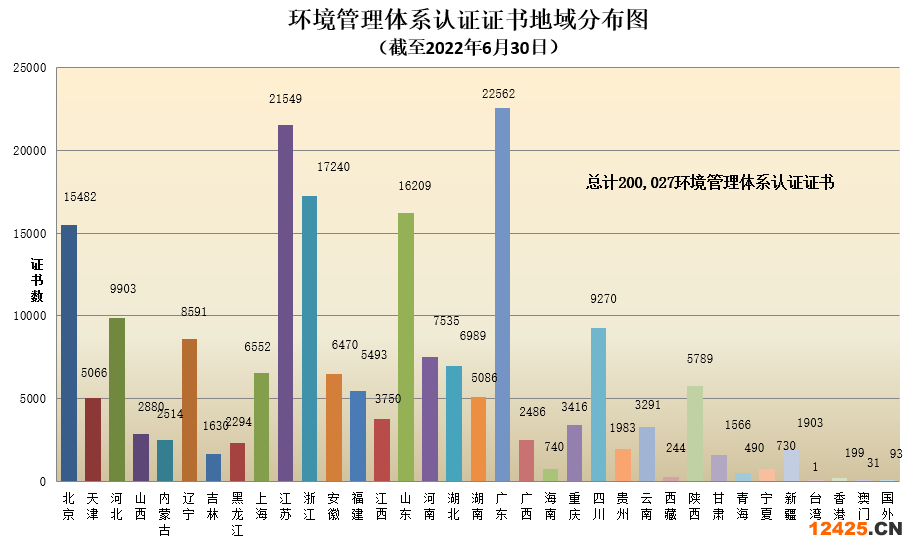 環(huán)境管理體系認(rèn)證證書(shū)地域分布圖