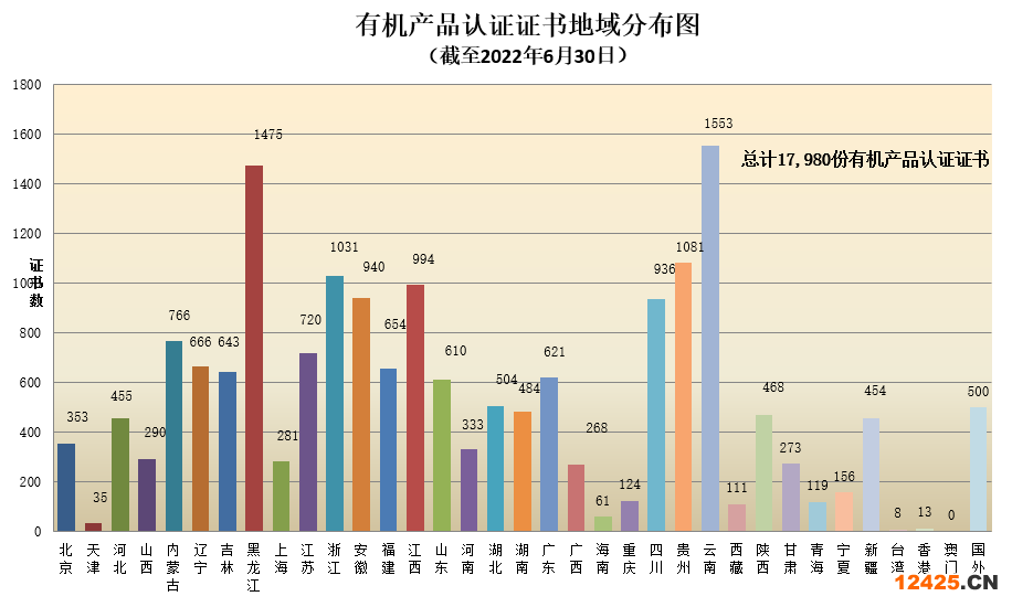 有機(jī)產(chǎn)品認(rèn)證證書(shū)地域分布圖