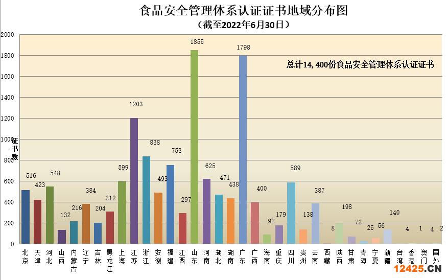 食品安全管理體系認(rèn)證證書(shū)地域分布圖
