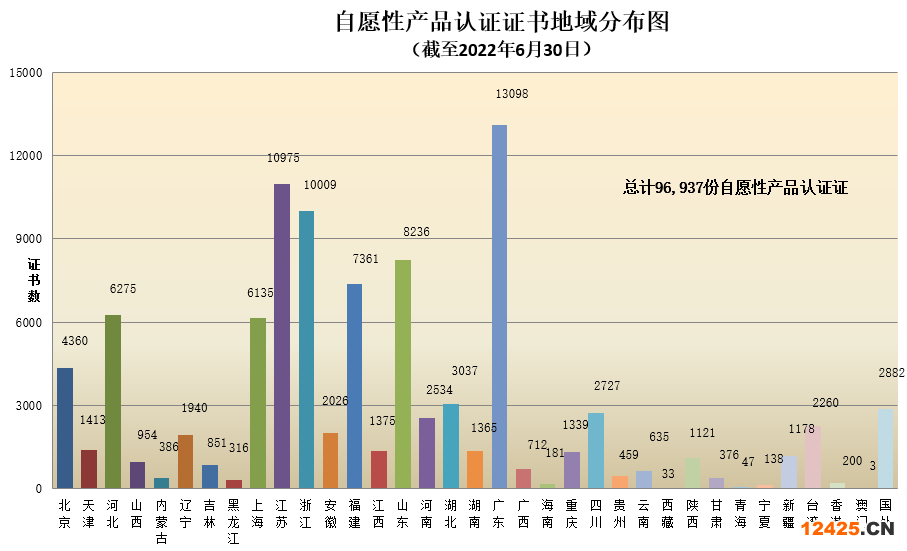 自愿性產(chǎn)品認(rèn)證證書(shū)地域分布圖