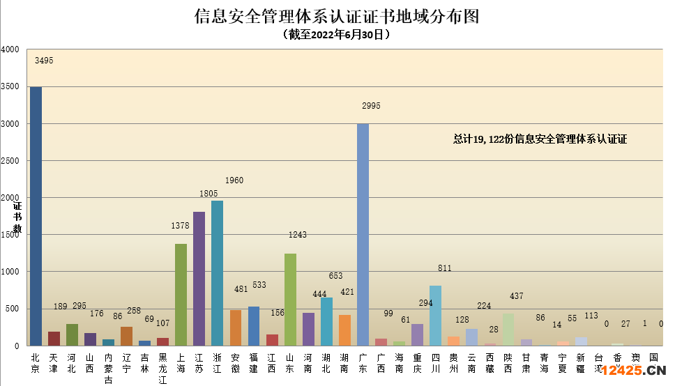 信息安全管理體系認(rèn)證證書(shū)地域分布圖