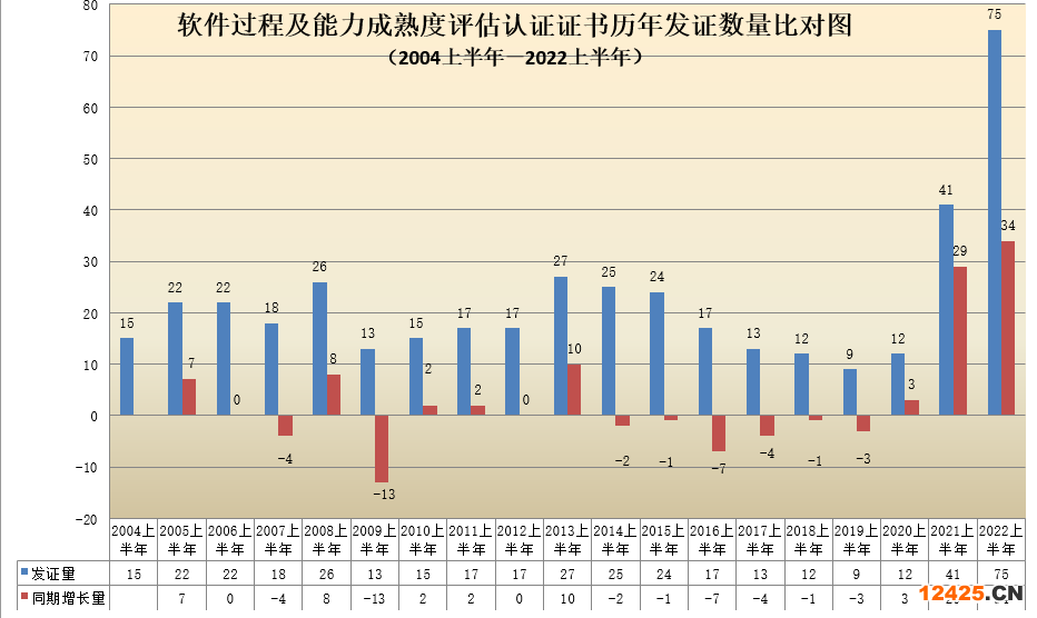 軟件過(guò)程及能力成熟度評(píng)估認(rèn)證證書(shū)歷年發(fā)證數(shù)對(duì)比圖