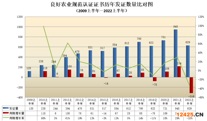 良好農(nóng)業(yè)規(guī)范認(rèn)證證書(shū)歷年發(fā)證數(shù)量比對(duì)圖