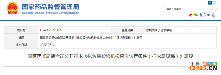 國(guó)家藥監(jiān)局綜合司公開征求《化妝品檢驗(yàn)機(jī)構(gòu)資質(zhì)認(rèn)定條件(征求意見稿)》意見