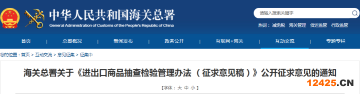 海關(guān)總署關(guān)于《進(jìn)出口商品抽查檢驗(yàn)管理辦法 (征求意見稿)》公開征求意見的通知