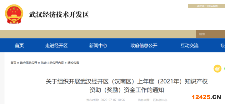 關于組織開展武漢經(jīng)開區(qū)(漢南區(qū))上年度(2021年)知識產(chǎn)權資助(獎勵)資金工作的通知