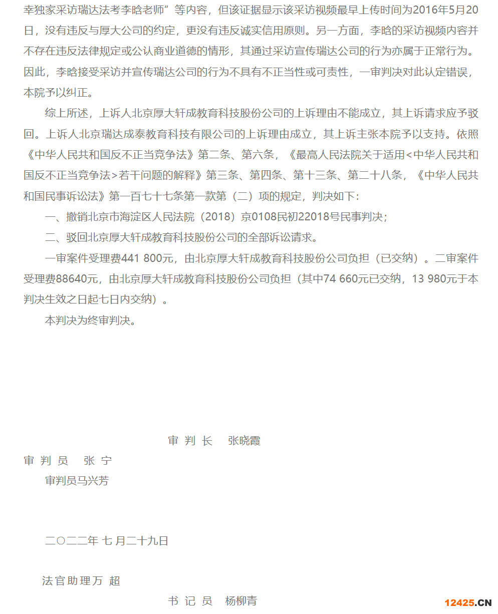 司考培訓(xùn)硝煙:厚大與瑞達(dá)不正當(dāng)競爭案二審改判|附判決書