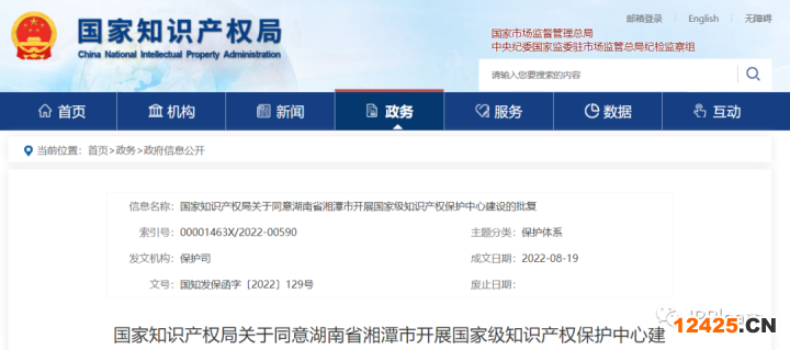 國(guó)知局:同意湖南省和湘潭市開展國(guó)家級(jí)知識(shí)產(chǎn)權(quán)保護(hù)中心建設(shè)