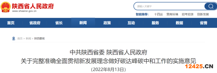 中共陜西省委 陜西省人民政府關(guān)于完整準(zhǔn)確全面貫徹新發(fā)展理念做好碳達(dá)峰碳中和工作的實(shí)施意見(jiàn)