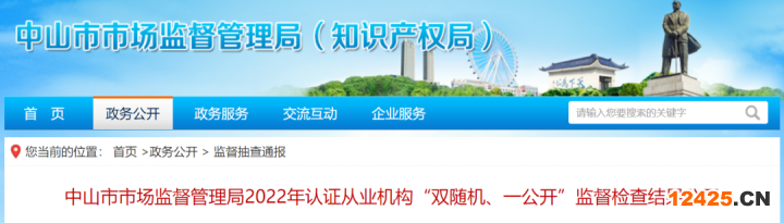中山市市場監(jiān)督管理局2022年認(rèn)證從業(yè)機(jī)構(gòu)“雙隨機(jī)、一公開”監(jiān)督檢查結(jié)果公示
