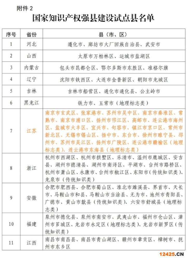 2. 國家知識(shí)產(chǎn)權(quán)強(qiáng)縣建設(shè)試點(diǎn)縣名單