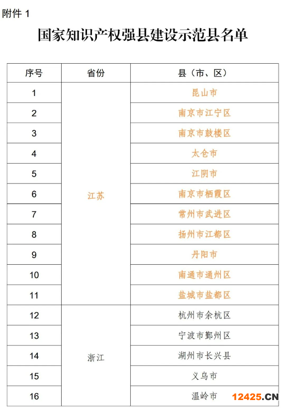 附件:1. 國家知識(shí)產(chǎn)權(quán)強(qiáng)縣建設(shè)示范縣名單
