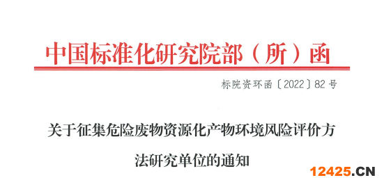 關(guān)于征集危險(xiǎn)廢物資源化產(chǎn)物環(huán)境風(fēng)險(xiǎn)評(píng)價(jià)方法研究單位的通知