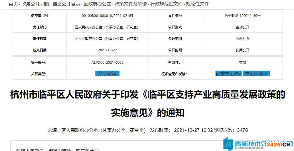 杭州市臨平區(qū)高新技術(shù)企業(yè)獎勵政策:臨平區(qū)支持產(chǎn)業(yè)高質(zhì)量發(fā)展政策的實施意見