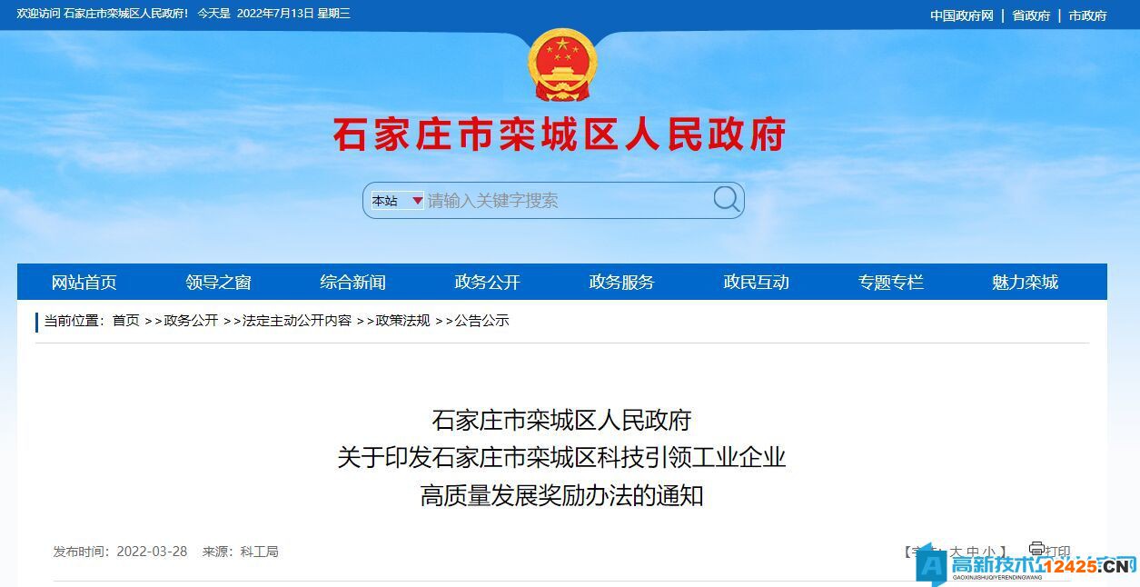 石家莊市欒城區(qū)高新技術企業(yè)獎勵政策:石家莊市欒城區(qū)科技引領工業(yè)企業(yè)高質量發(fā)展獎勵辦法