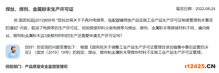 按國質(zhì)檢監(jiān)[2012]695號(hào) "質(zhì)檢總局關(guān)于不再對電焊條、驗(yàn)配眼鏡兩類產(chǎn)品實(shí)施工業(yè)產(chǎn)品生產(chǎn)許可證制度管理有關(guān)事項(xiàng)的通知" 內(nèi)容,取消了電焊條的生產(chǎn)許可證,但按焊接材料分類電焊條與焊絲、焊劑、金屬粉末等焊接材料不同,請問焊絲、焊劑和金屬粉末這3類焊劑材料的生產(chǎn)還需要申請生產(chǎn)許可證嗎?