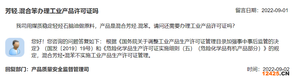 芳輕.混合笨辦理工業(yè)產(chǎn)品許可證嗎: