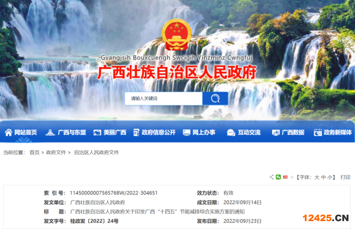 廣西壯族自治區(qū)人民政府關(guān)于印發(fā)廣西“十四五”節(jié)能減排綜合實(shí)施方案的通知