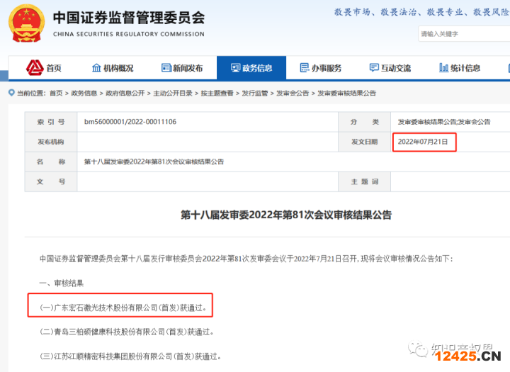 隨著激光切割設(shè)備行業(yè)的蓬勃發(fā)展,激光切割設(shè)備領(lǐng)域迎來了資本投資的熱潮。據(jù)悉,廣東宏石激光技術(shù)股份有限公司(下稱“宏石激光”)于2021年7月1日提交招股說明書,2022年7月21日,證監(jiān)會發(fā)審委發(fā)布公告稱,廣東宏石激光技術(shù)股份有限公司(首發(fā))獲通過。