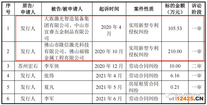 據(jù)招股說明書顯示,宏石激光目前與競爭對手有關(guān)實(shí)用新型專利侵權(quán)糾紛的訴訟正在進(jìn)行中。