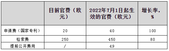 7、2022.7.1起,歐亞申請和發(fā)明專利的費(fèi)用金額平均將上調(diào)30%左右