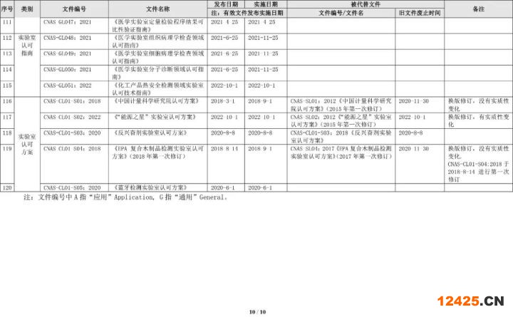 近日,中國合格評定國家認可委員會發(fā)布最新CNAS實驗室認可規(guī)范文件清單,共包含120個文件。