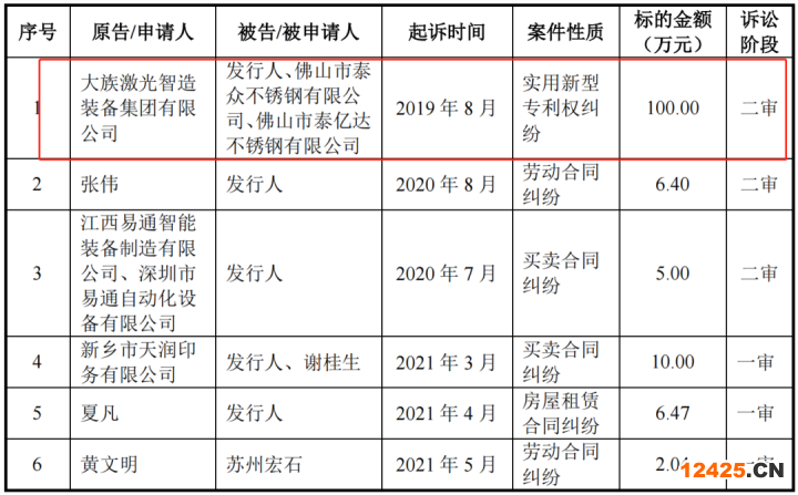 據(jù)招股說明書顯示,宏石激光目前與競(jìng)爭(zhēng)對(duì)手有關(guān)實(shí)用新型專利侵權(quán)糾紛的訴訟正在進(jìn)行中。