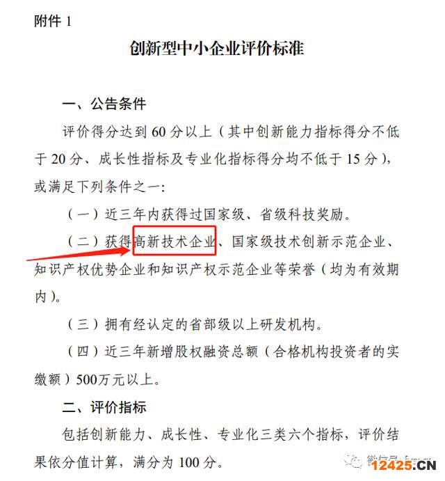 于工信局發(fā)布的創(chuàng)新型中小企業(yè)評價標(biāo)準(zhǔn)中,我們可見公告條件之一是企業(yè)獲得高新技術(shù)企業(yè)(有效期內(nèi))。中小企業(yè)進行高新企業(yè)認(rèn)定相當(dāng)于踏入了創(chuàng)新型中小企業(yè)的一大門檻。