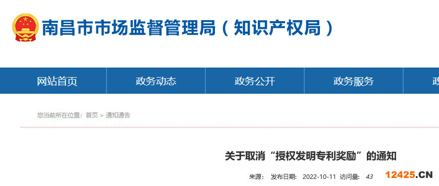 近日,南昌市市場監(jiān)督管理局發(fā)布關(guān)于取消“授權(quán)發(fā)明專利獎勵”的通知。其中提到,經(jīng)市政府批準,現(xiàn)取消《南昌市市場監(jiān)督管理專項——知識產(chǎn)權(quán)專項資金管理辦法》(洪財行〔2021〕2號)中“第十條 (一)知識產(chǎn)權(quán)創(chuàng)造 2.授權(quán)發(fā)明專利獎勵”和《南昌市市場監(jiān)督管理專項——知識產(chǎn)權(quán)專項資金項目管理辦法》(洪市監(jiān)聯(lián)發(fā)〔2021〕17號)中“第六條 授權(quán)發(fā)明專利獎勵項目”。自2022年11月16日起不再受理此項獎勵。