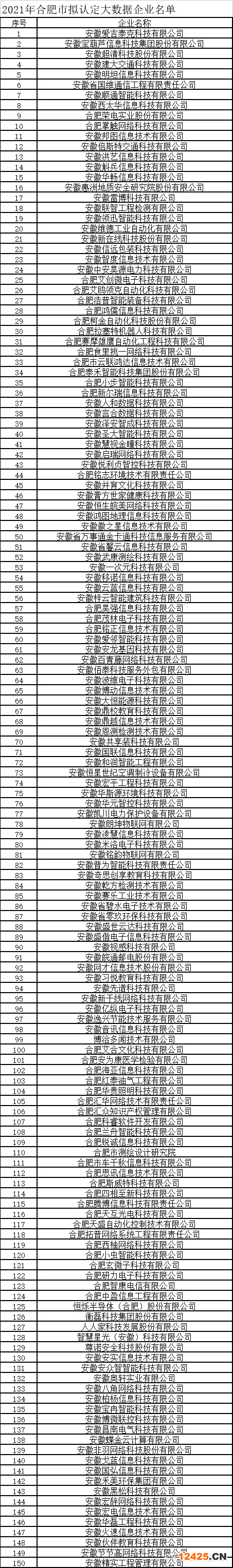 核心提示:合肥市大數據企業(yè)公示名單和各區(qū)認定獎勵5萬-20萬2021年,合肥市共有775家企業(yè)被認定為合肥市大數據企業(yè),認定數量較上年增長108%,有效期