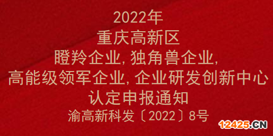 2022年重慶高新區(qū)瞪羚企業(yè),獨(dú)角獸企業(yè),高能級(jí)領(lǐng)軍企業(yè),企業(yè)研發(fā)創(chuàng)新中心認(rèn)定申報(bào)通知